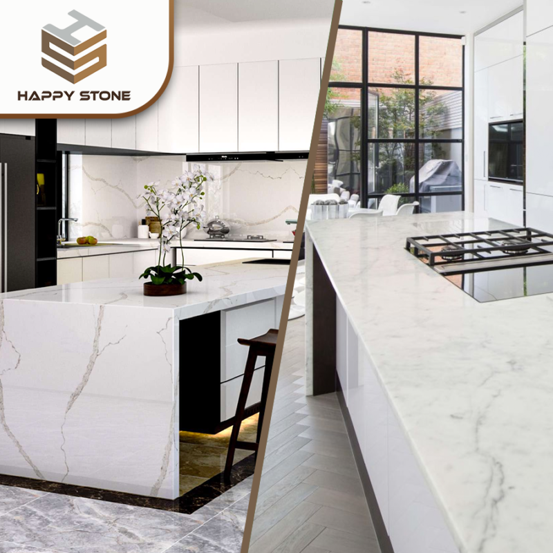 Đá tự nhiên (trái) và đá nhân tạo (phải)